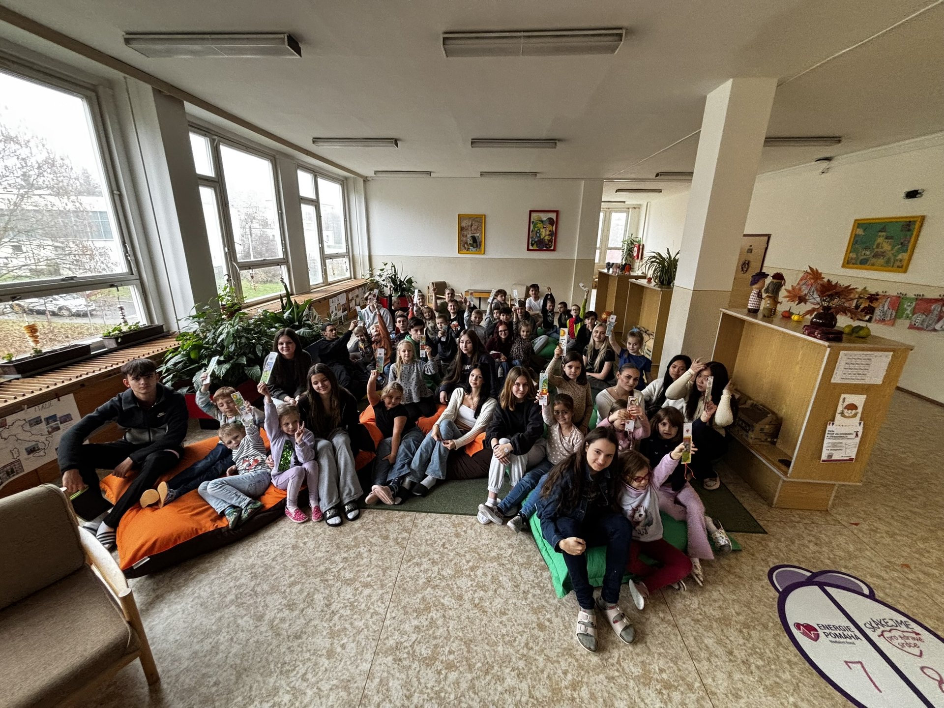 Po pečlivých týdenních přípravách přišel velký den. V rámci projektu #jsemlaskavec dorazili žáci 9. B v úterý 11. 11. 2025 k našim nejmenším, k dětem v 1. A, aby je nezištně a mile potěšili, aby je motivovali, aby jim ještě více zpříjemnili pobyt ve škole. S prvňáčky se již deváťáci znají z úvodních dní tohoto školního roku, kdy jim pomáhali zvládnout adaptaci na nové školní prostřední. Tehdy měl každý žáček svého velkého kamaráda, který mu pomáhal s odemykáním šatní skříňky, s hledáním cesty do třídy a byl jeho bezpečným průvodcem.