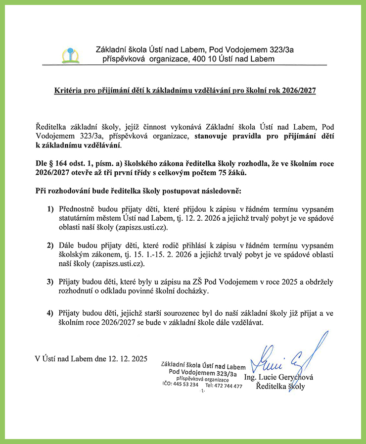 Kritéria pro přijímání dětí k základnímu vzdělávání