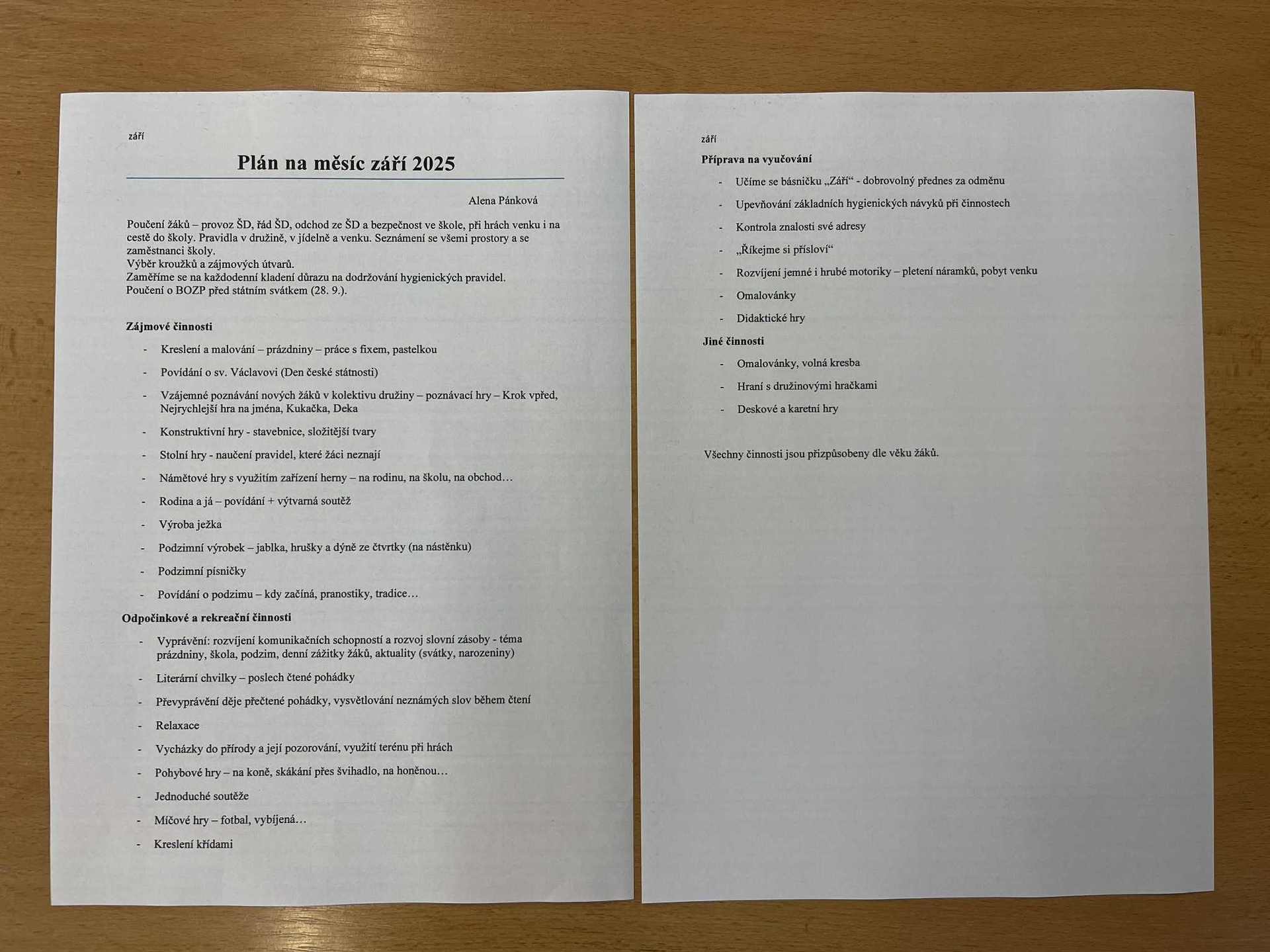 1. 9. přidáváme úvodní pozdrav ředitelky školy.