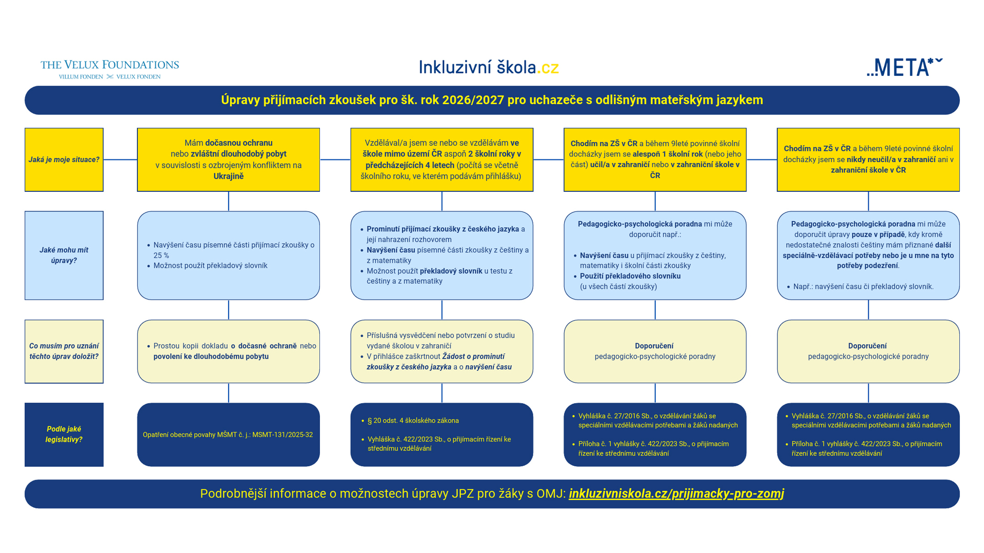 - Žáci s podpůrnými opatřeními si včas zařídí v příslušném poradenském zařízení potvrzení k úpravě JPZ (nejedná se o dosud platné doporučení) + POZOR na platný formulář!