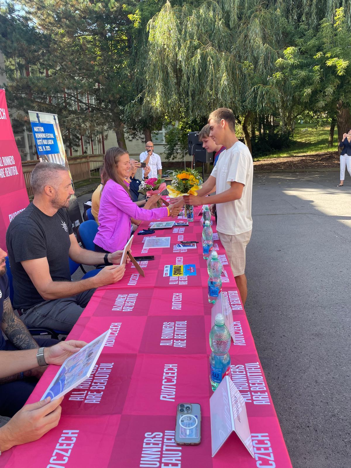 Celý den probíhal ve skvělé atmosféře a my velmi děkujeme RunCzechu, Slunetě a Viagemu za to, že si uvedení sportovci v jejich nabitém programu udělali čas. Všem, kteří se v sobotu 20. 9. postavíte na některou z tratí, přejeme úspěch a držíme palce.