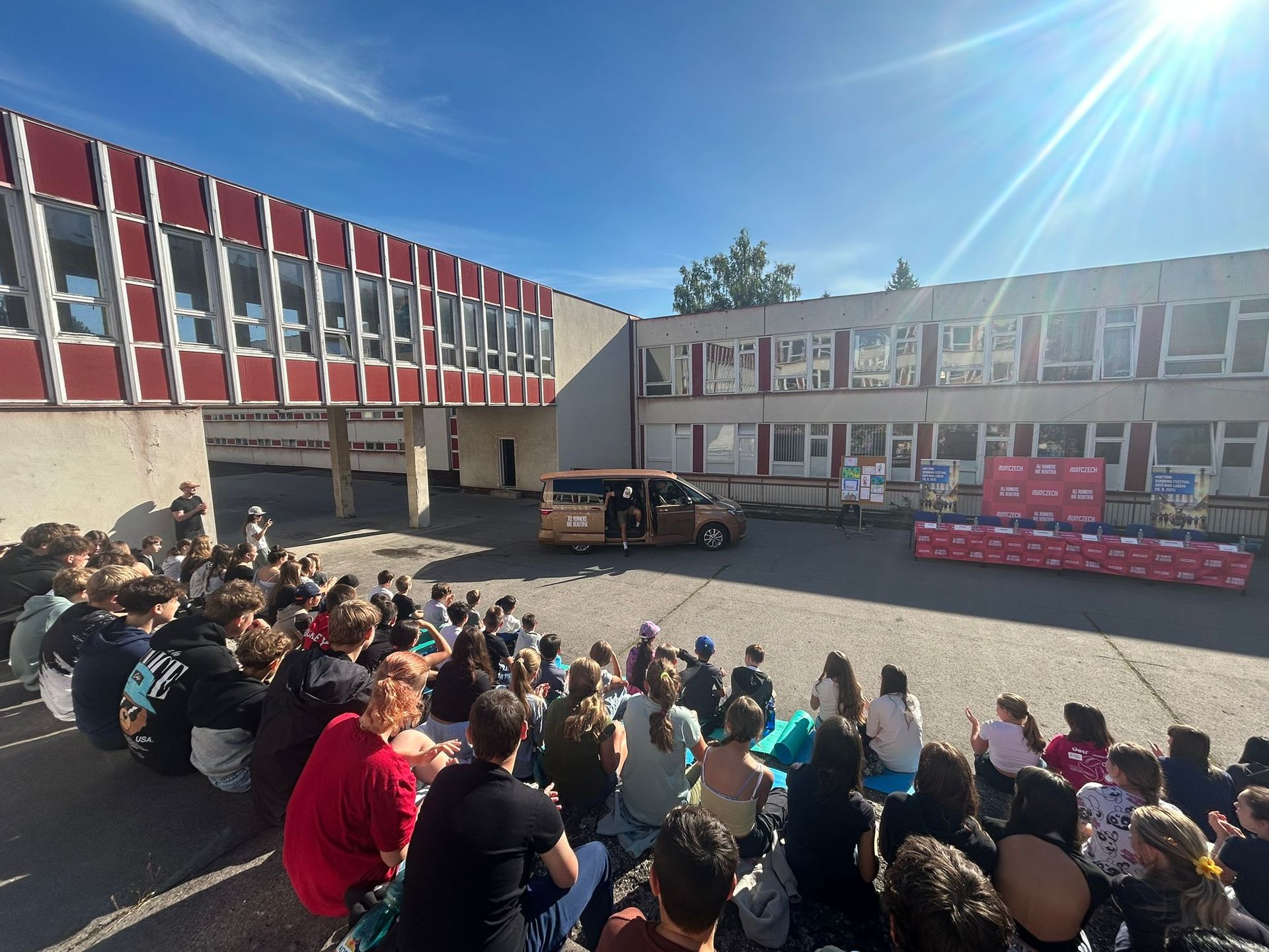 Již podruhé se u nás na škole objevila Tereza Hrochová, tentokrát ale jako držitelka nejrychlejšího času historie na 10km trati mimo dráhu. Za zmínku jistě stojí, že kromě dalších rekordů je také vítězkou Euroheroes 2023 a celková vítězkou loňského půlmaratonu v našem městě.